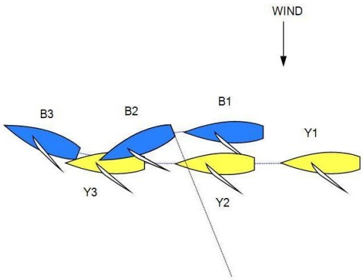 Blue and Yellow are on the same tack, with Blue clear ahead. Yellow is moving faster than Blue. Blue bears away and the boats become overlapped. Blue then turns the other way and there is a collision. Flag Y is displayed. What should the call be?