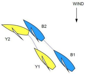 Yellow and Blue are sailing parallel courses. Yellow bears away hard and Blue is unable to keep clear. Contact occurs. Flag Y is displayed. What should the call be?