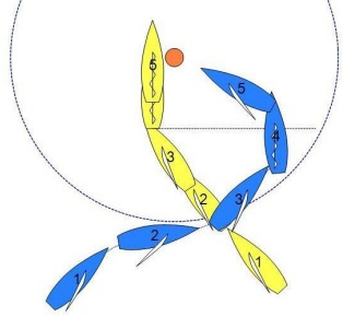 Yellow on starboard tack and Blue on port tack, both close-hauled, are approaching the windward mark to be left to starboard. Blue bears away and passes astern of Yellow. When Yellow reaches the zone, she is overlapped and on the inside of Blue. Yellow luffs slowly and nearly stops head to wind with the mark abeam. While Yellow is luffing, Blue tacks to starboard and bears away towards the mark. Yellow does not give room at the mark, and Blue luffs to avoid a collision. Flag Y is displayed by Blue. What should the call be?