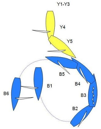 Blue and Yellow are sailing on a leg of the course to a leeward mark on port tack.