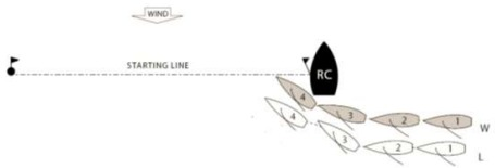 The race committee vessel was both a mark and an obstruction for L and W (see the definitions Mark and Obstruction). However, because the committee vessel was surrounded by navigable water and L and W were approaching it to start, the rules in Section C of Part 2 (specifically rules 18 and 19) did not apply. Accordingly, L was under no obligation to give W room to pass to leeward of the committee vessel.